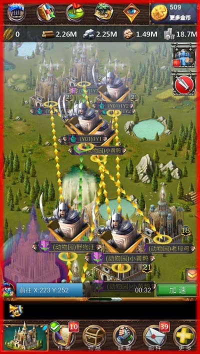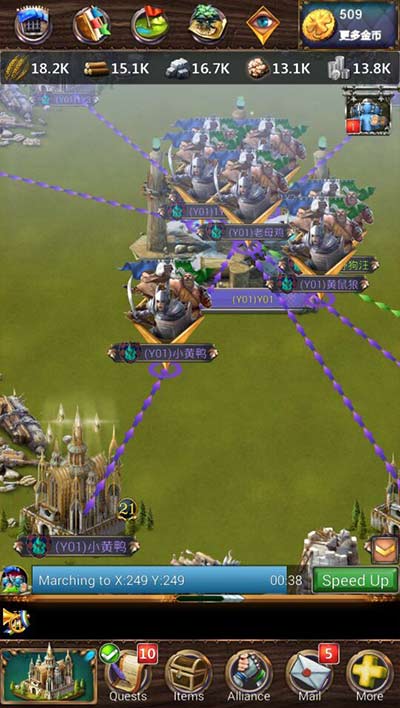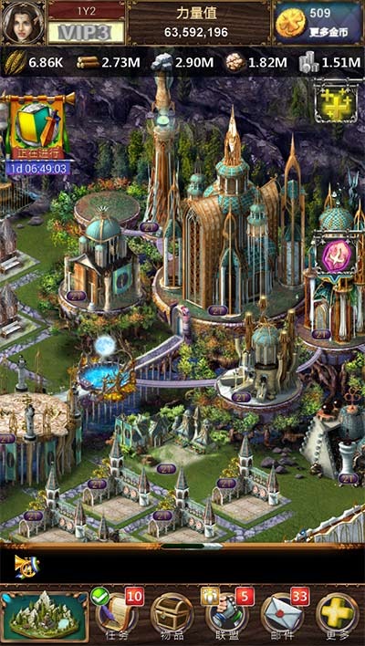 群P不够劲,跨服来助阵。中国有句老话说得好,团结就是力量!没有比这个更强大的了。游戏里可以加入联盟组织,在联盟中与盟友并肩作战,与其他联盟缔结外交友好关系,找出间谍,征服整个王国大陆(霸气),有了团队,遗迹争夺,跨服争霸这还算事了嘛。