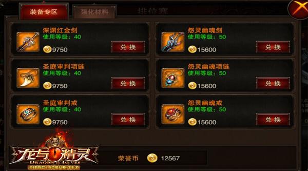 竞技,不只是一场生死搏斗,你付出的汗水和血水,都将换来无上的荣誉!而通过每场胜利获得的荣誉值,可以在荣誉商城换购珍稀道具和极品装备。在《龙与精灵》里,想获得橙色装备不是一件容易的事,越完美的神兵利器越稀有,所以荣誉商城也是官方对玩家为荣誉殊死战斗的回馈。
