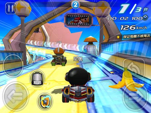 另一方面,《跑跑卡丁车》的操作方式更是及其简单。两手控制两侧方向按钮,利用上方按钮释放各类游戏道具,轻松完成包括飘逸、急转、加速等高难度动作。且完善的游戏优化与合理配置,真真把移动端休闲竞速赛车理念推向极致。
